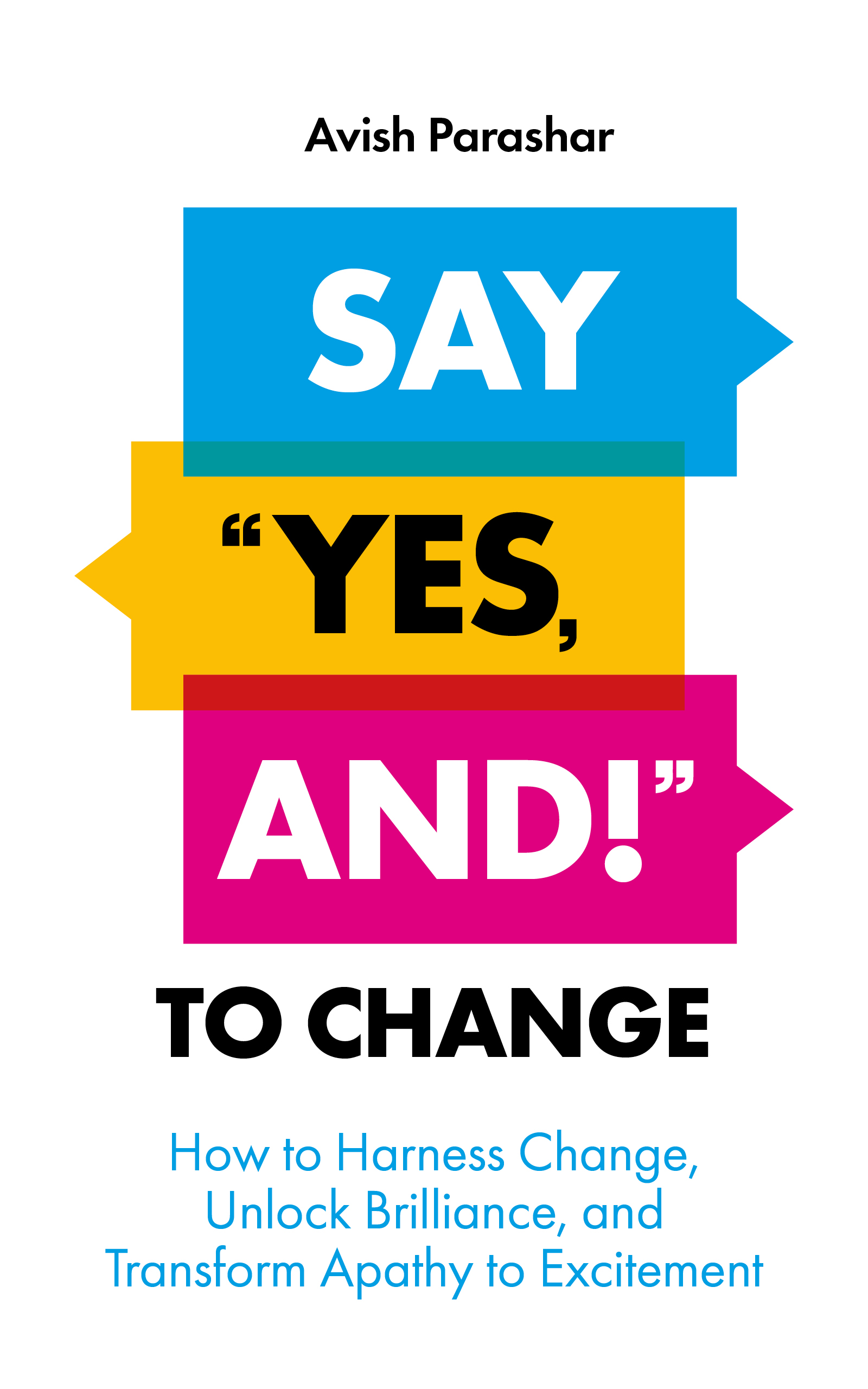 So what is the book about? Well, its title is "Say Yes And to Change." And you're like, oh, great, Avish. Now you've got another book on the market on change. There's plenty of those. Why do we need another book? What's different about this one? Well, there are a couple of things that are different. Number one, obviously, my entire differentiator is the applied improvisation. So I approach change through the lens of improv comedy and "Yes And," which is in and of itself not unique because there are other people who do applied improv. But I think when you combine that with what I believe to be the big differentiator of this book is if you look at the subtitle, the book is "Say Yes And to Change." The subtitle is "How to Harness Change, Unlock Brilliance, and Transform Apathy into Excitement." And I think that subtitle right there is the differentiator, apathy into excitement.